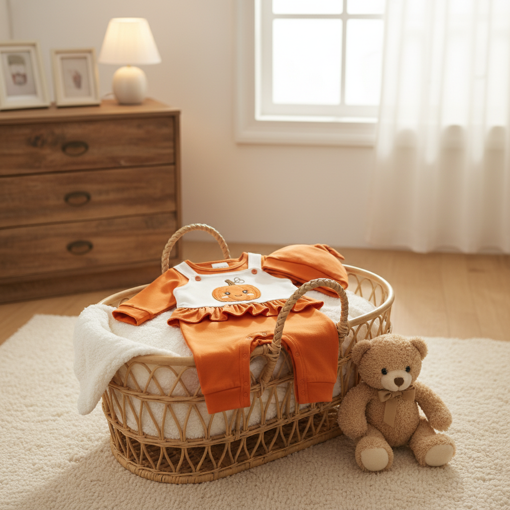Home Boutique Vêtements pour enfants Grenouillère Bébé Citrouille & Bonnet Assorti | Ensemble Coton Doux | QELVRO