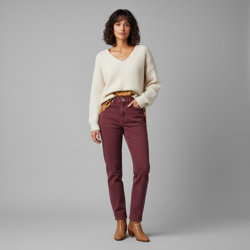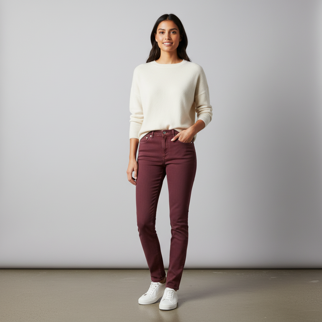 L’Art du Détail : Une Supériorité Palpable : L’excellence se cache dans les détails. Notre denim de coton premium offre une souplesse et une résistance incomparables. Sa couleur bordeaux, intense et profonde, résulte d’une teinture experte garantissant une tenue et un éclat durables, défiant les standards. Chaque élément, des surpiqûres ton sur ton réalisées avec une précision d’horloger aux rivets métalliques robustes, témoigne d’un savoir-faire exceptionnel. Ce n’est pas un simple jean fabriqué, c’est une pièce conçue pour durer et vous sublimer, un véritable investissement dans votre style.