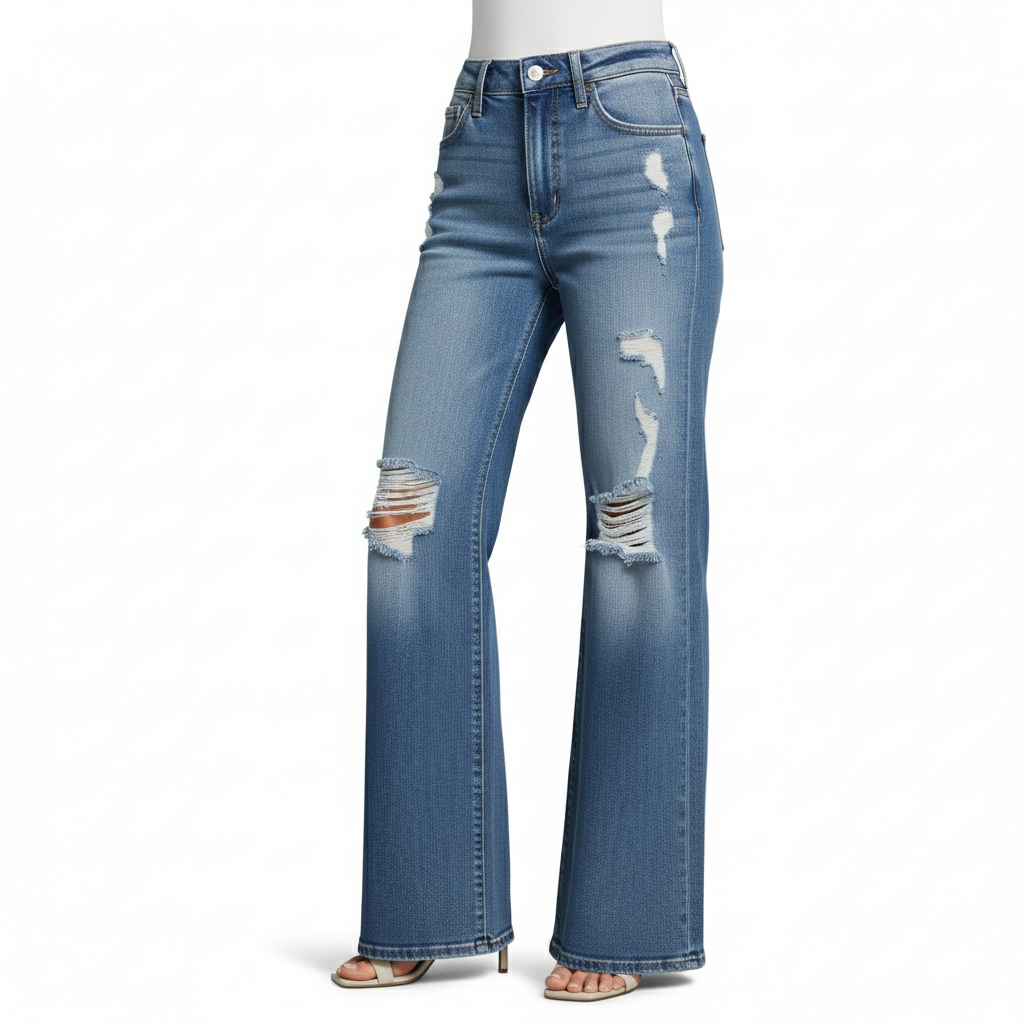 SKU: QEL-JEA-001 Category: Jean bootcut Tags: denim extensible femme, jean casual chic, Jean confortable femme, jean coupe large, jean élégant décontracté, jean large femme, jean maille stretch, jean souple femme, jean taille haute QELVRO, mode féminine moderne, pantalon large chic Brand: Qelvro