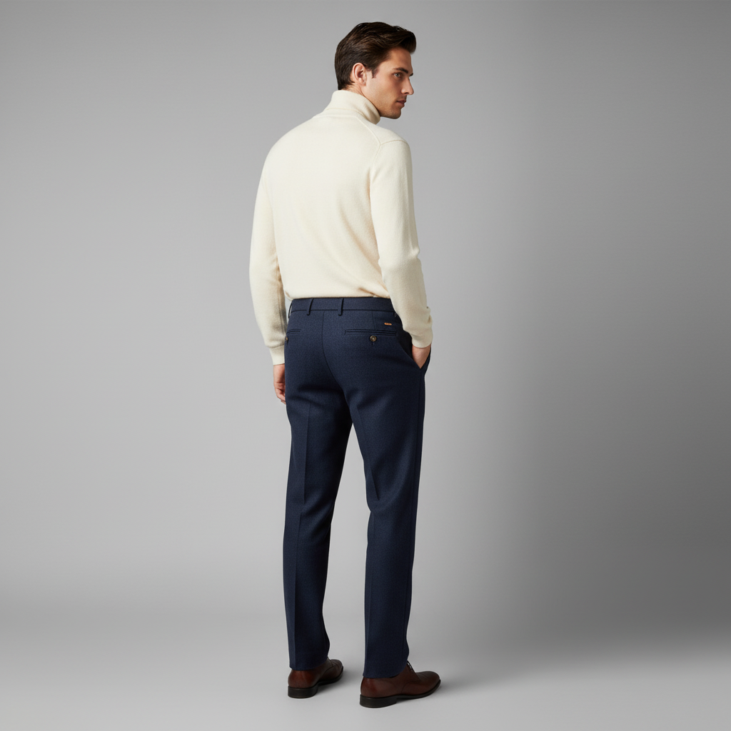 - Laine Mélangée Texturée : Un alliage intelligent de fibres offrant une résistance exceptionnelle au froissement, une tenue irréprochable et un toucher agréable, pour une allure sophistiquée qui dure toute la journée, sans compromis sur le confort.