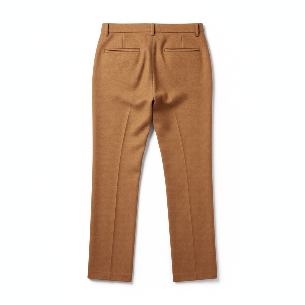 - Plis marqués sur le devant : Dessinent une ligne structurée et raffinée, allongeant visuellement les jambes pour une allure élancée et professionnelle.